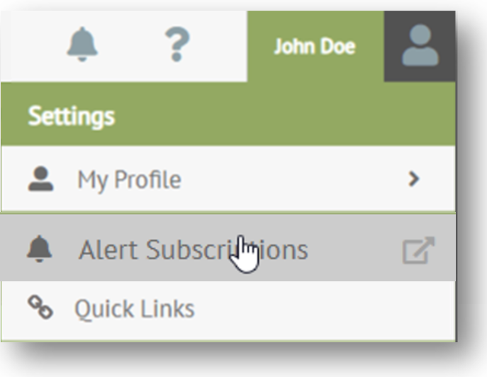 Select Alert Subscriptions to launch the Alert Subscriptions page.